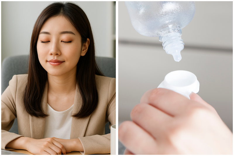 1. 補充人工淚液,穩定眼表環境:人工淚液是乾眼症患者最常用的舒緩方式。建議選擇無防腐劑配方,可每日多次使用以保持眼睛濕潤。若在換季時出現乾澀、刺痛等情形,隨身攜帶人工淚液即時補充,可有效減少角膜摩擦與紅眼問題。